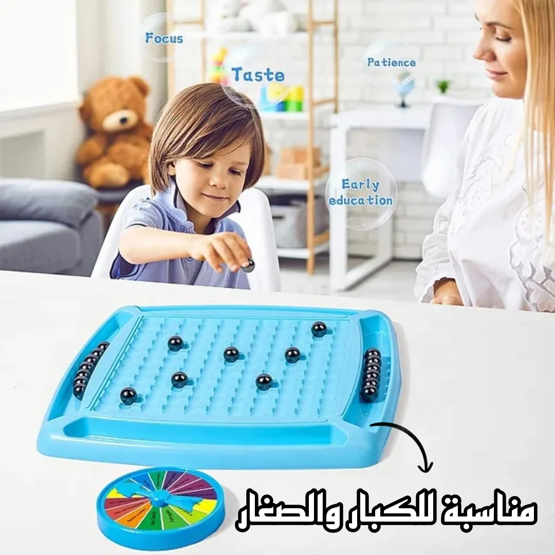 اللعبة مكونة من كرات مغناطيسية و ترابيزة صغيرة وعجلة دوارة لتنفيذ الأحكام 🤗