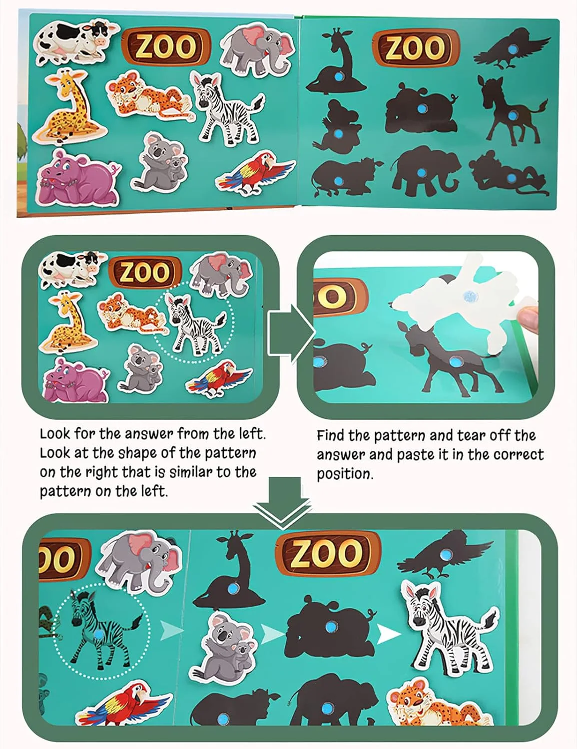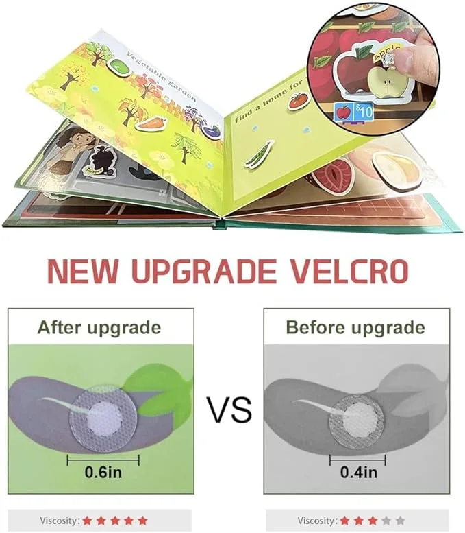 La taille améliorée des pièces autocollantes est de 1,5 cm, plus facile à choisir et à coller, vous et vos bébés enfants ne serez plus dérangés par la petite taille. En outre, notre livre occupé pour les tout-petits est doté d'un double épaississement, d'un bord anti-coupant et d'un design aux coins arrondis de chaque page et de chaque petit morceau, empêchant les petites mains de se blesser. Le livre silencieux Montessori n'est pas facile à plier, à déchirer et recouvert d'un film imperméable, peut être utilisé maintes et maintes fois.